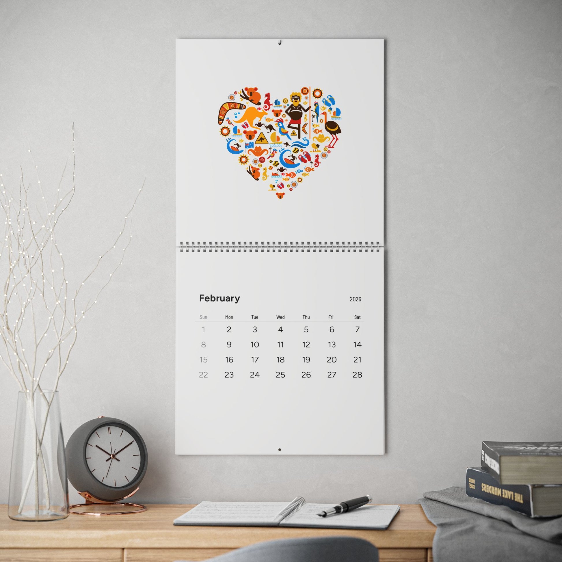 This wall calendar brings a burst of color and personality to every month. Each page pairs bright, high-resolution artwork with a writable, matte month grid so you can plan, jot notes, and keep track of important dates without smudges. The top-bound metal spiral makes flipping pages smooth, and the centered hanging hole keeps it neatly displayed on any wall. Printed on heavy 250gsm paper with your choice of high-gloss or consistent matte finishes, this calendar balances striking visuals with everyday practicality — an easy way to brighten a home, studio, or office while staying organized all year long.