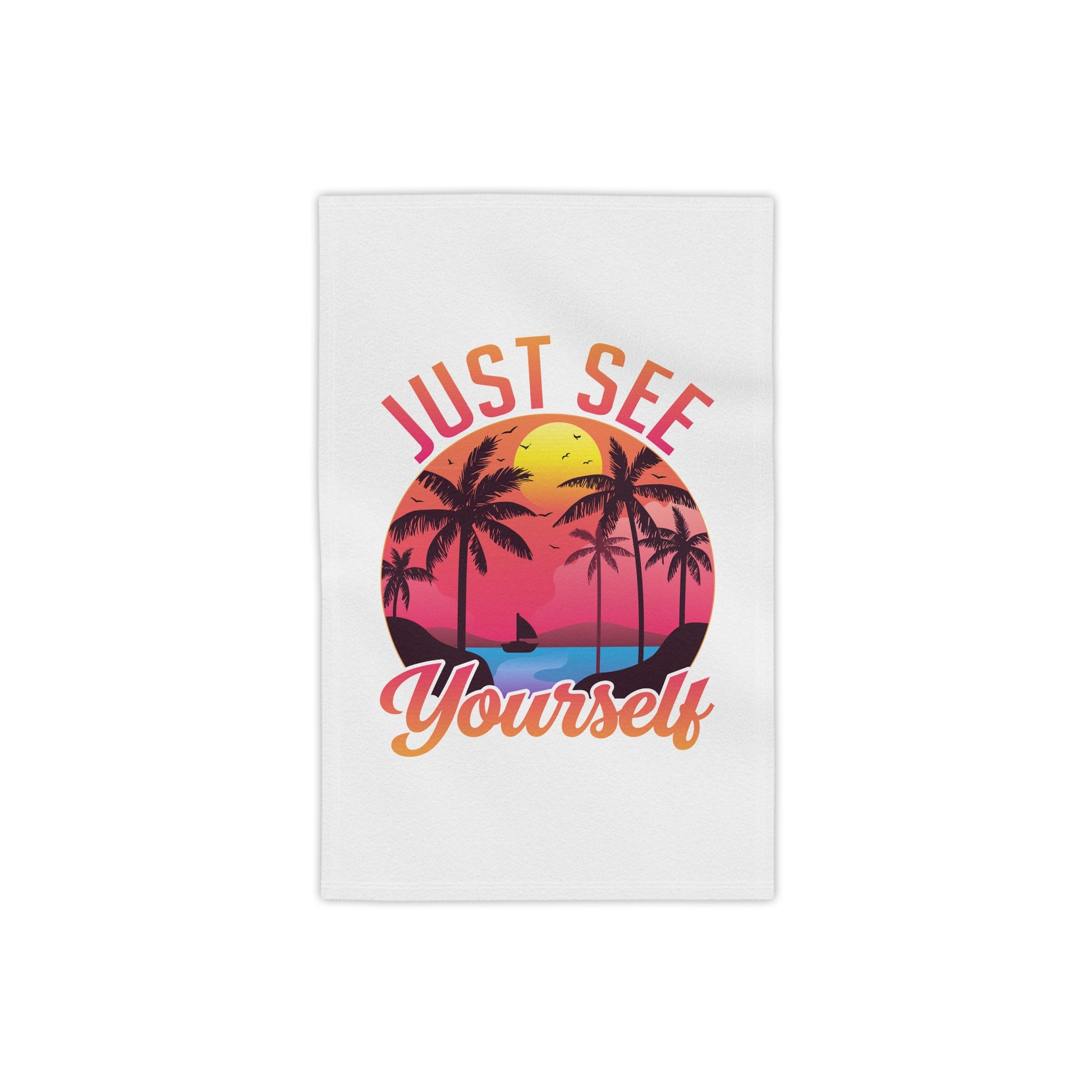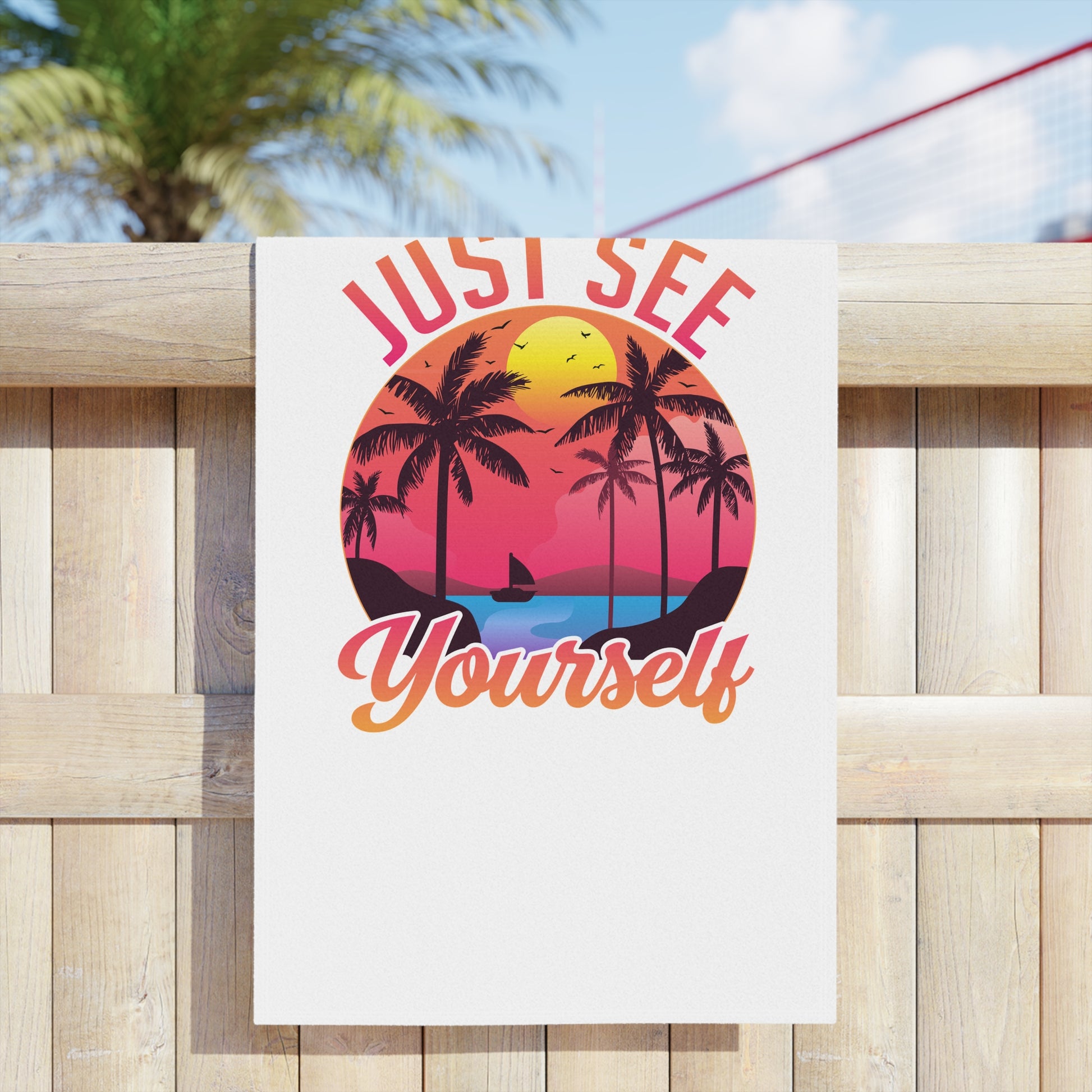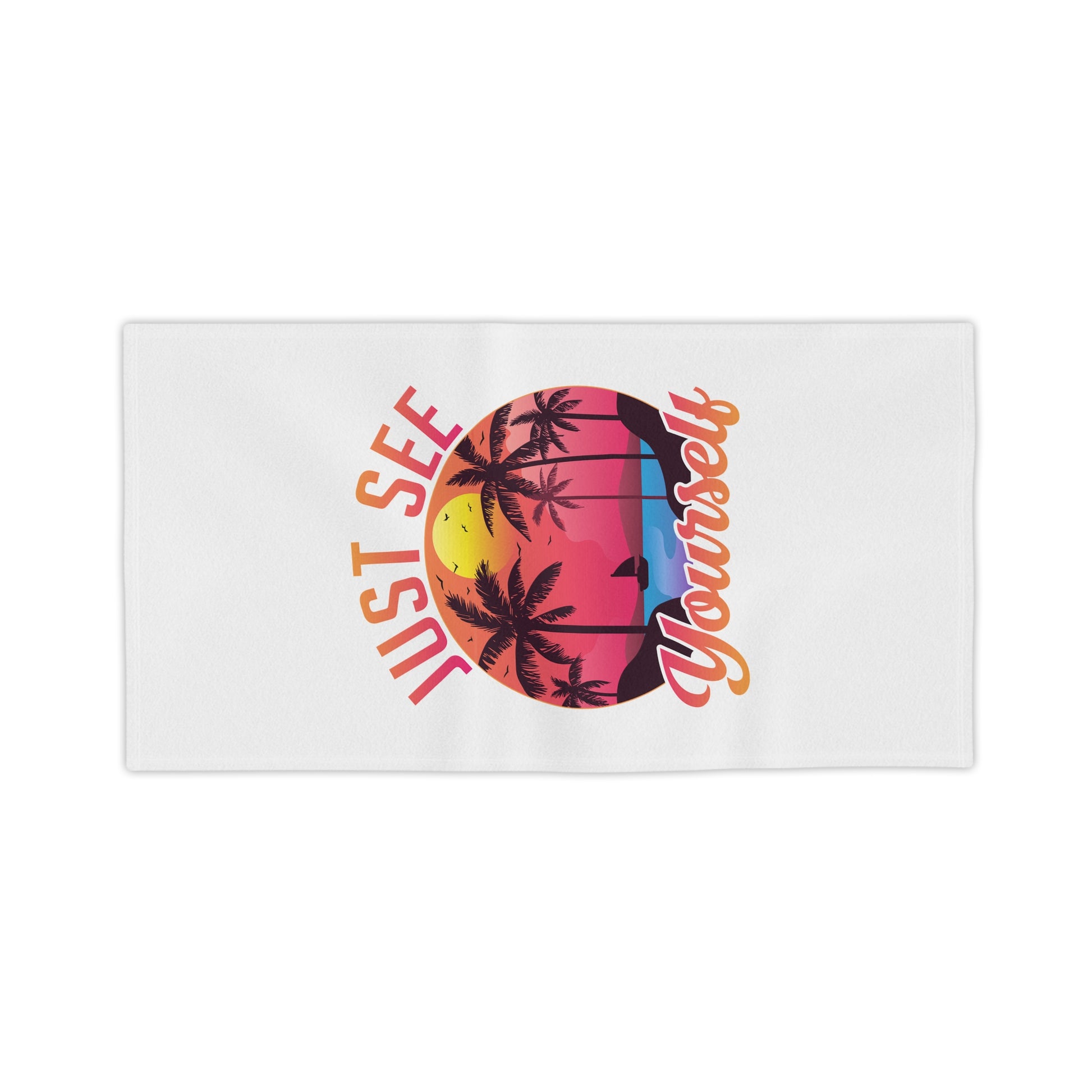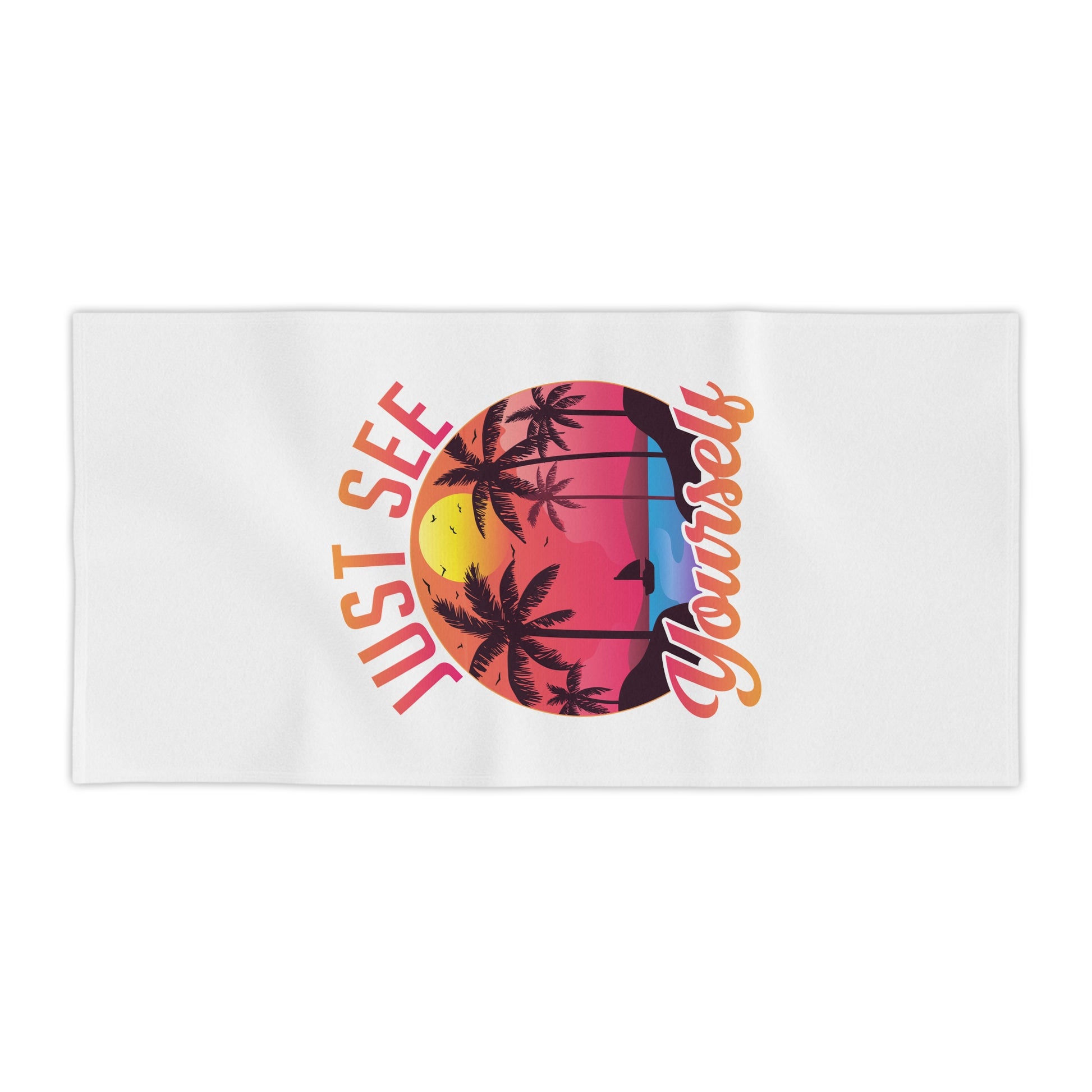 Beach Towel - "Just See Yourself" Tropical Sunset Palm Print