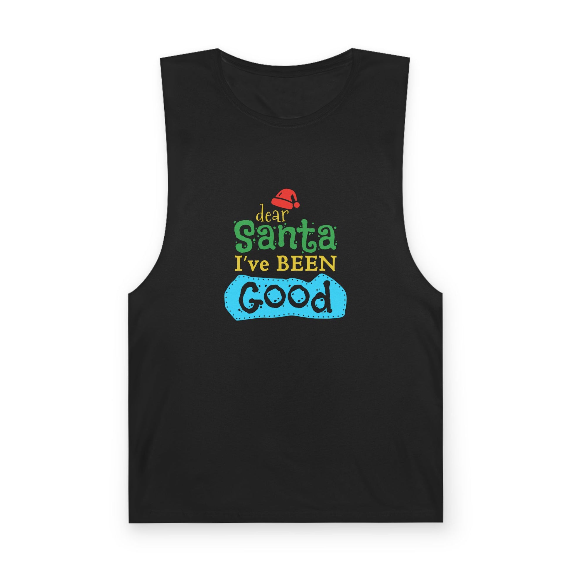 Christmas Tank Top — “Santa I’ve Been Good” Holiday Graphic Tank (Shimmy Cocoa Back)