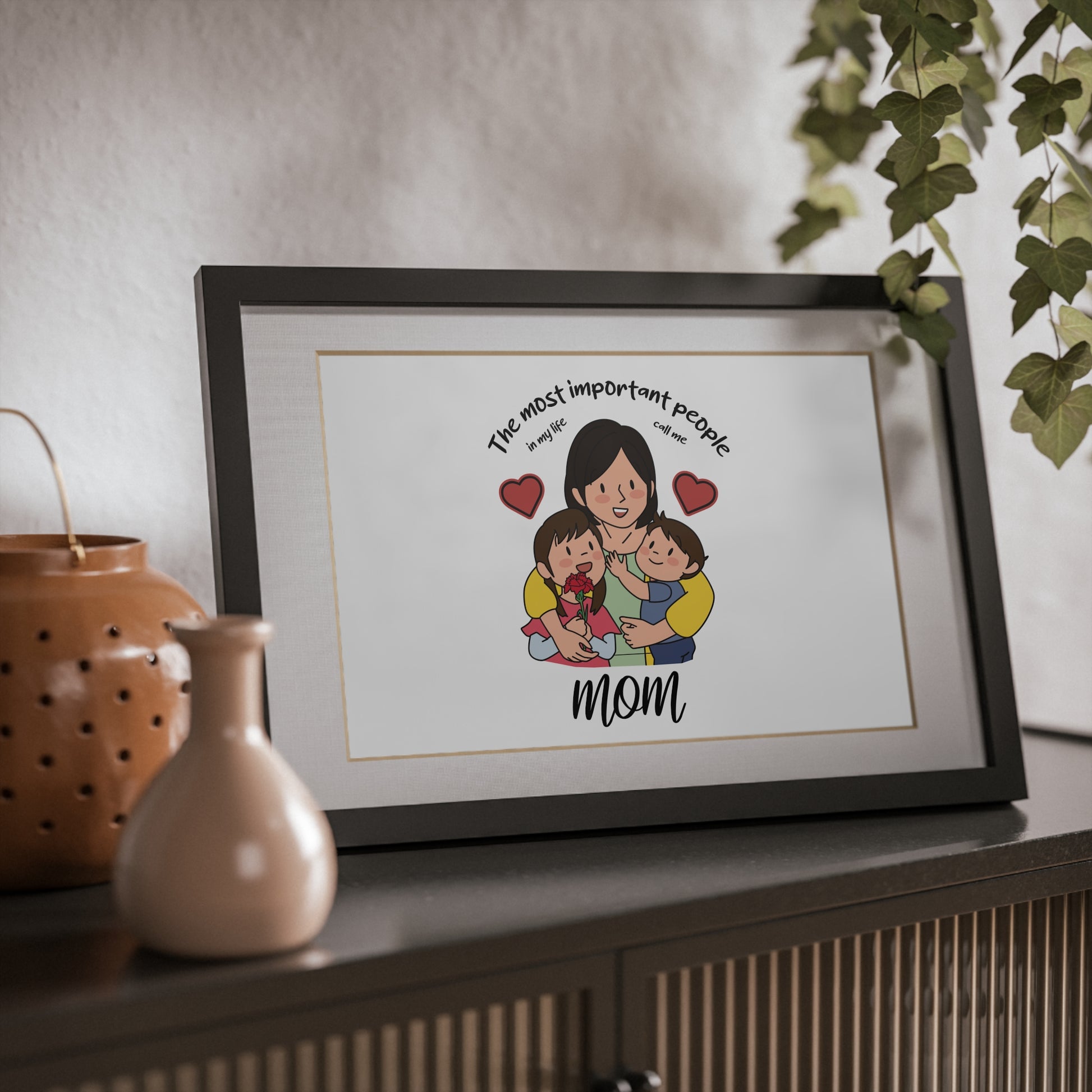 Framed Mom Poster — "The most important people" Family Illustration (Black Frame)