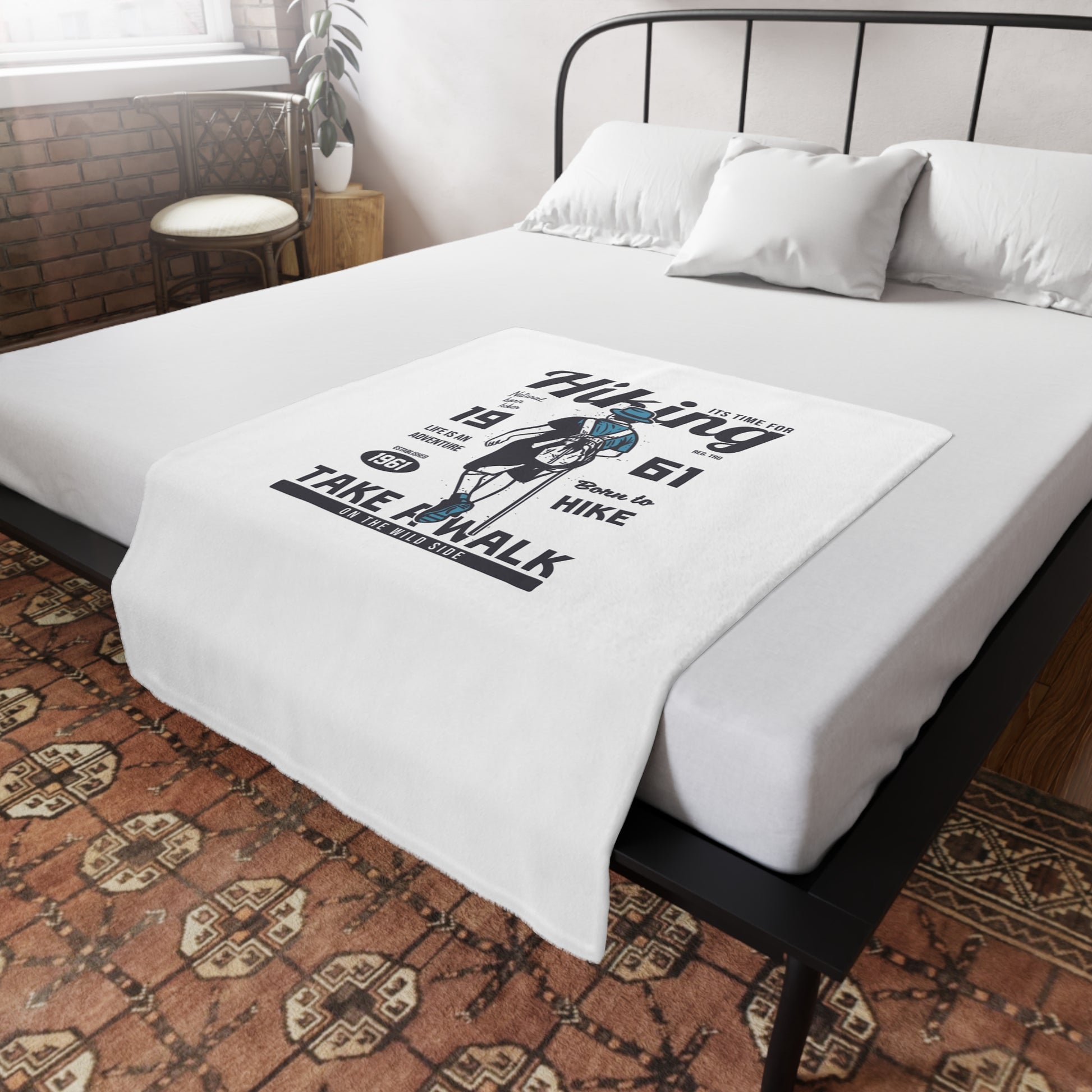 Hiking Adventure Plush Fleece Blanket — "Take a Walk" Outdoor Camper Gift