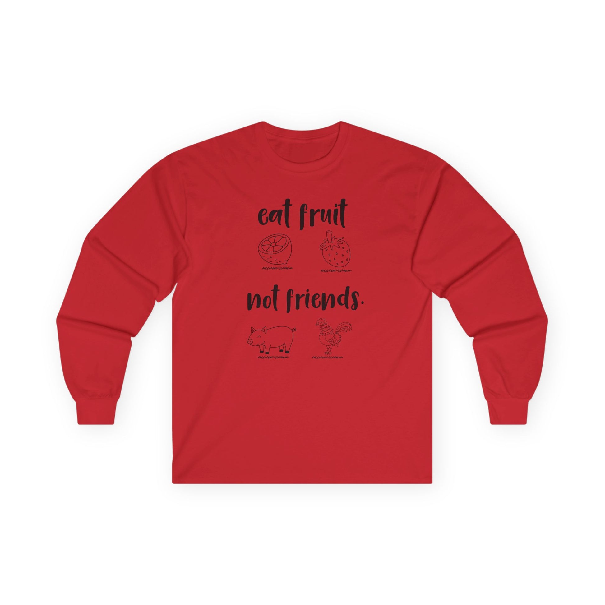 Long Sleeve Tee — "Eat Fruit Not Friends" Vegan Graphic Shirt