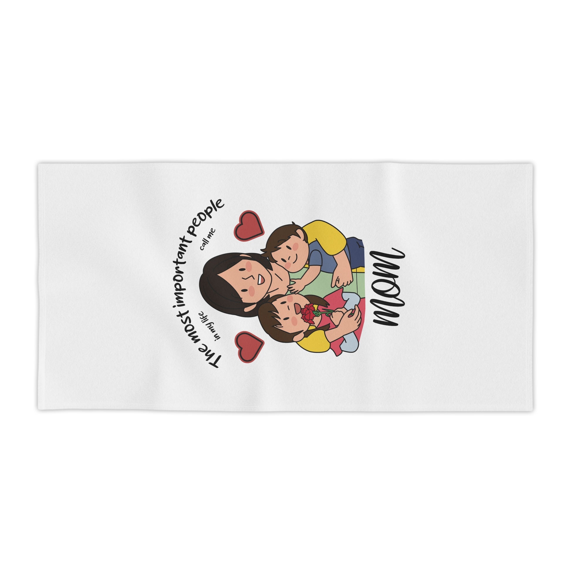 Wrap warm, sunny days around a memory — this vibrant, ultra-soft beach towel shows a mother and two kids in a tender, playful hug, framed by sweet hearts and the handwritten word “mom.” Bright, edge-to-edge printing keeps the illustration lively and clear, while the plush cotton back feels gentle on skin after a long day by the water. Lightweight and quick-drying, it folds down for a daypack or beach bag and returns to life with every wash. Use it to mark a special day at the shore, carry a bit of home to a picnic, or keep poolside moments cozy and colorful.