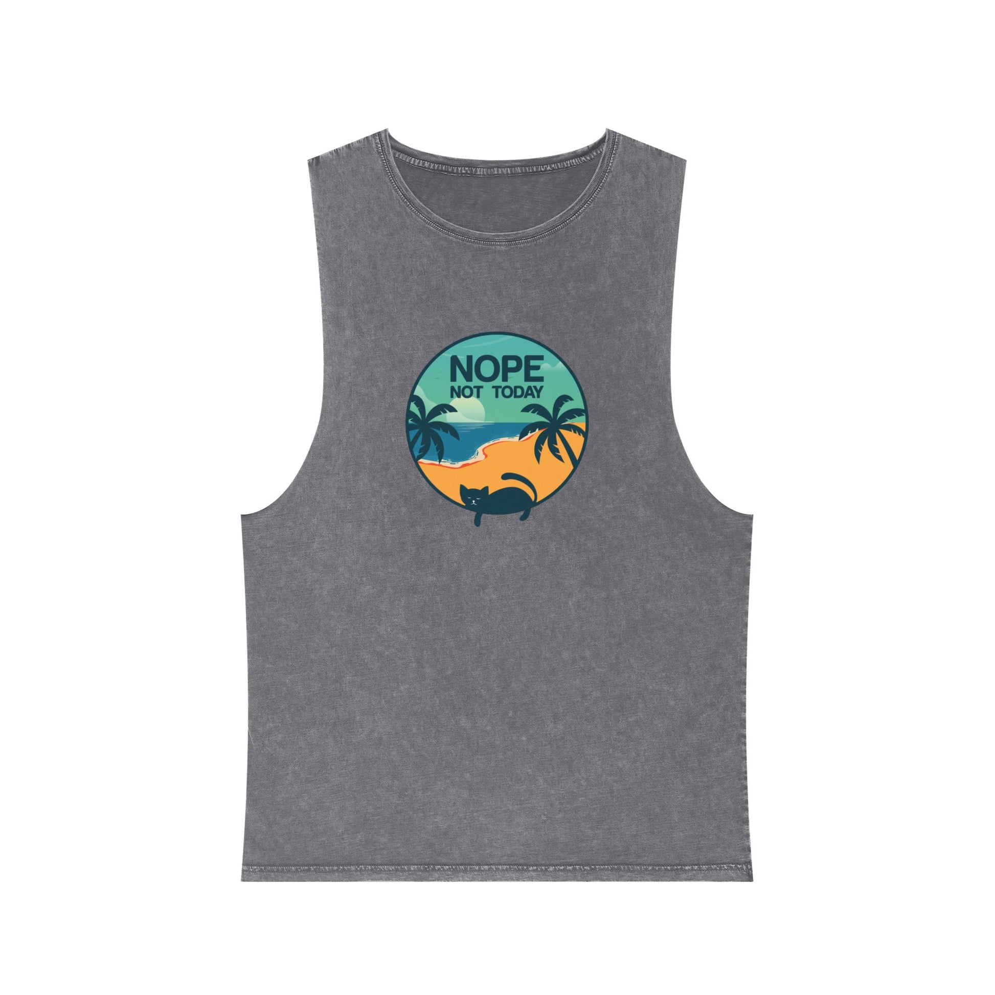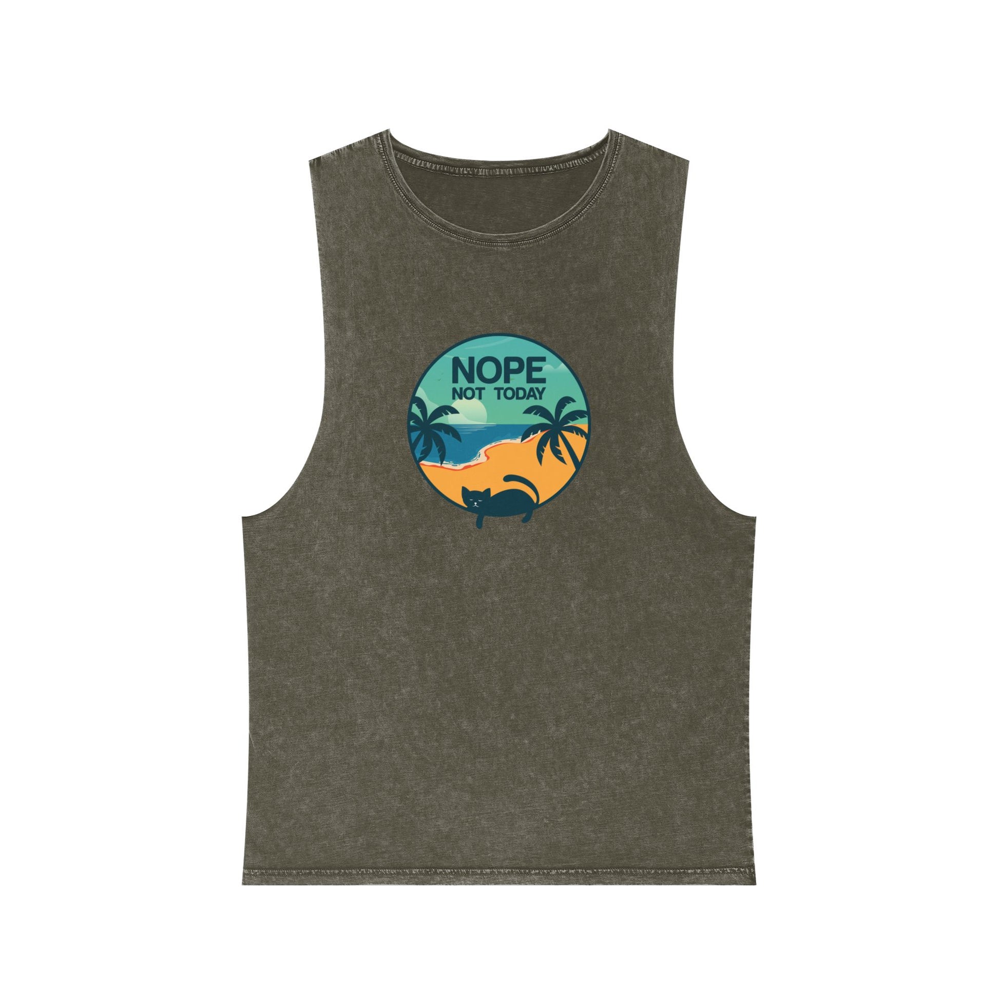 Nope Not Today Tank Top — Retro Beach Palm Graphic Stonewash Tank