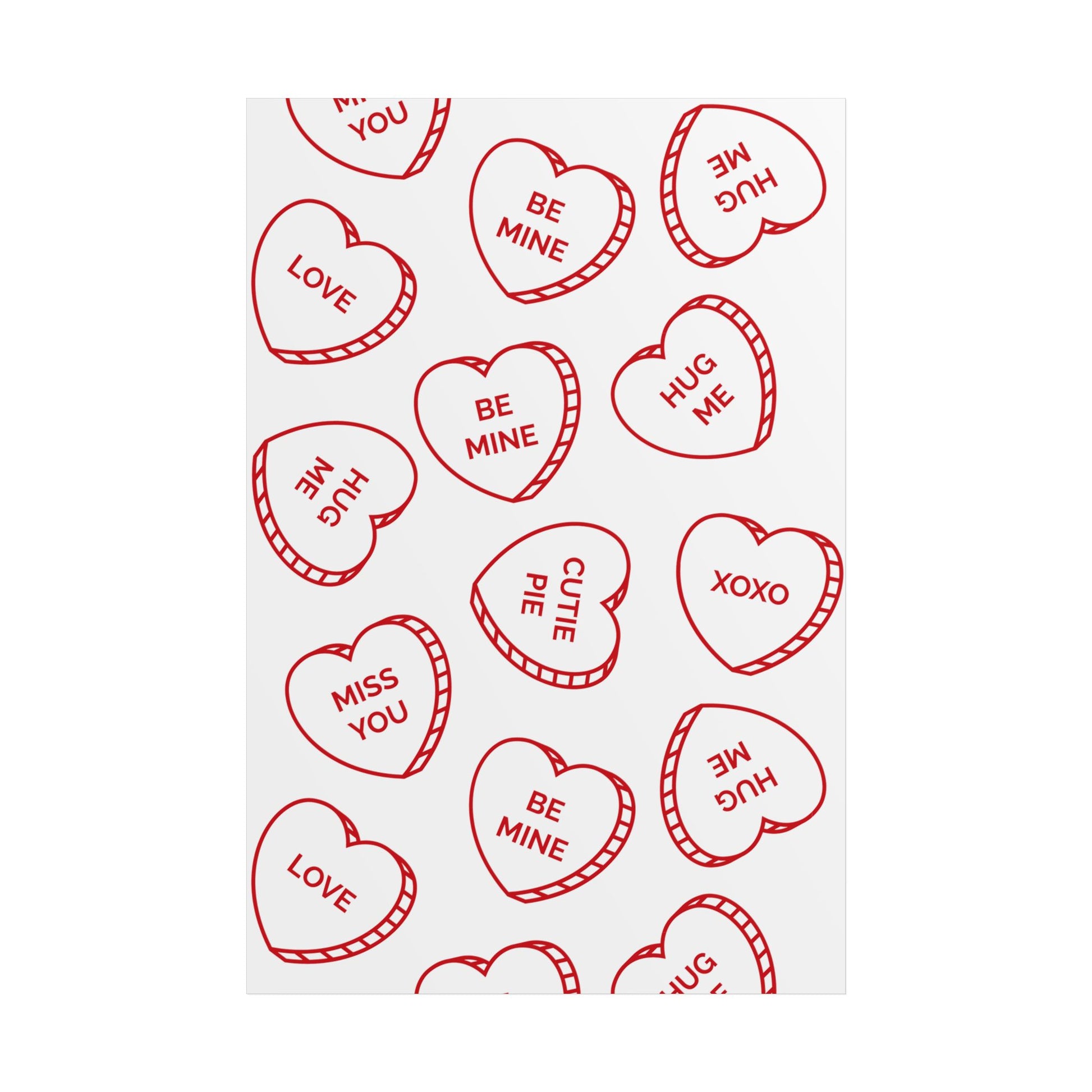 Valentine Candy Heart Pattern Unframed Poster — Be Mine, XOXO Love Print